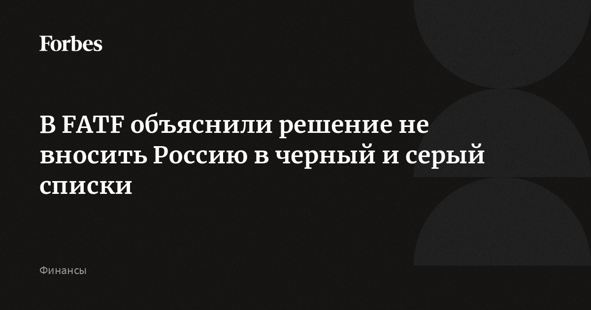 FATF ранее в пятницу, 23 июня, не включила Россию ни в черный, ни в серый список. Решение было принято на пленарном заседании группы, прошедшем 21–23 июня.